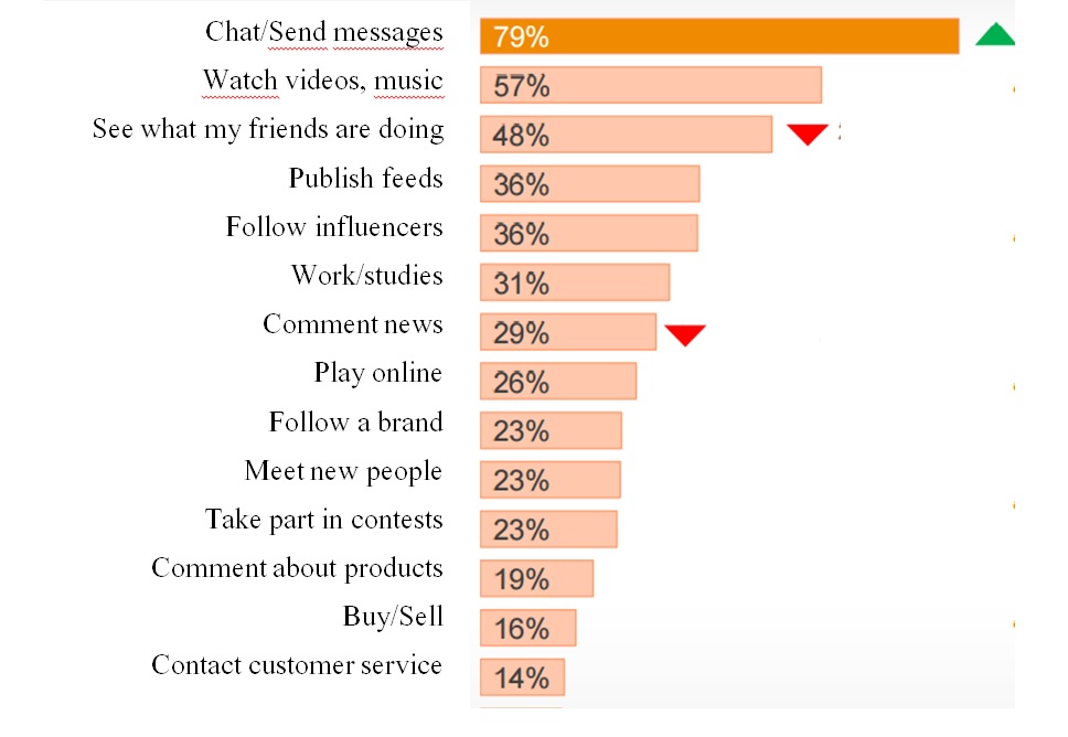 - The main reason for using social networks is to socialize (chat/send messages to friends, relatives, etc).